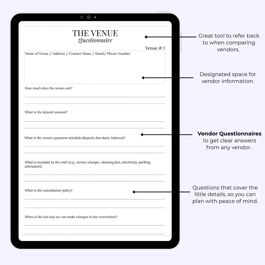 As soon as I saw this website I was BLOWN AWAY! So professional and very detailed! I’m the type of person who has a billion questions to asks and this planner has all the right questions to ask! Very organized and detailed, I cant wait to start planning my wedding!
