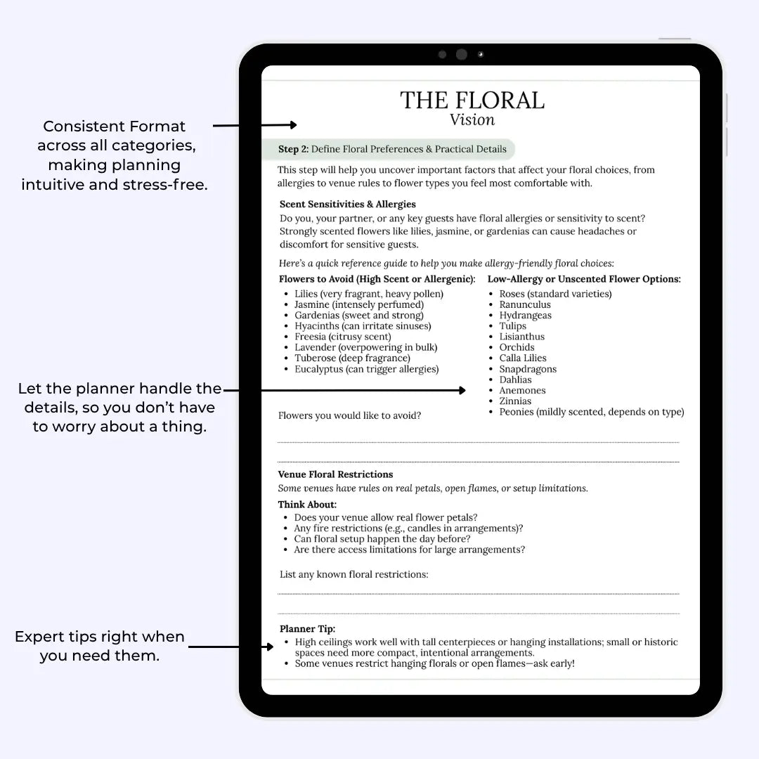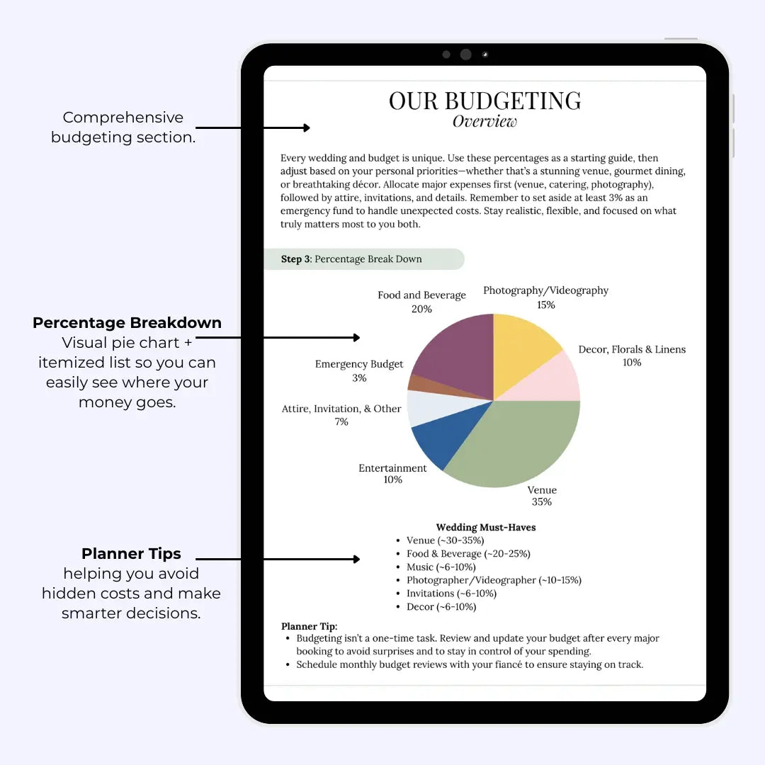 • Built-In Expert Guidance — Pro tips, wedding timelines, and industry insights